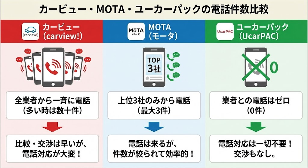 電話の多さは事実で、口コミでも繰り返し指摘されています。しかしその電話は、あなたの車を高く買いたい業者が競い合っている証拠。