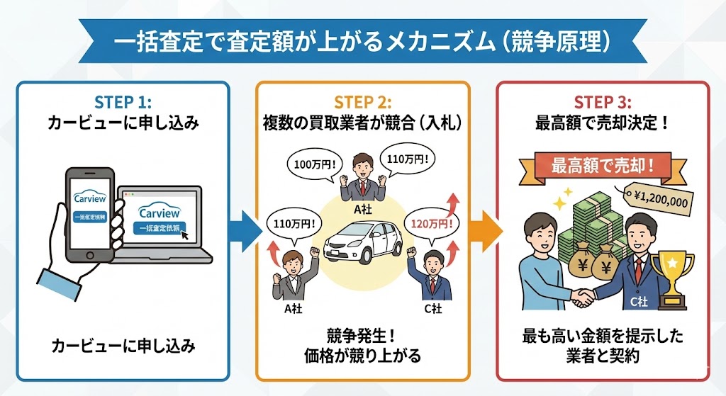 この競争原理こそが、ディーラー下取りより高値を引き出す原動力になっています。